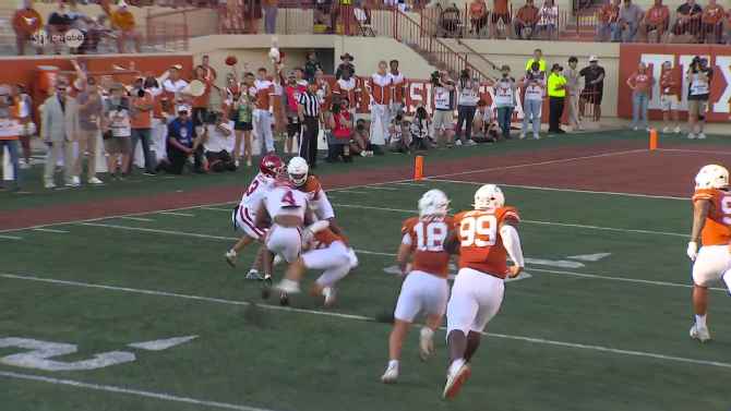 Bear Bachmeier is picked off by Jacob Rodriguez to give the Red Raiders the ball back.